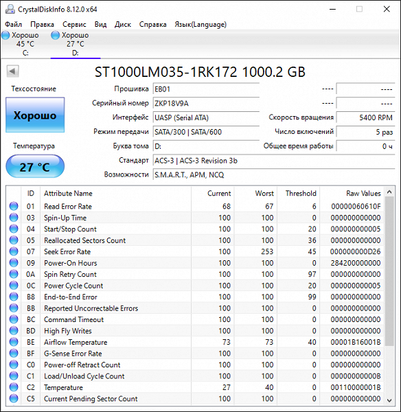Начну тестирование с CristalDiskInfo 7.1.1.